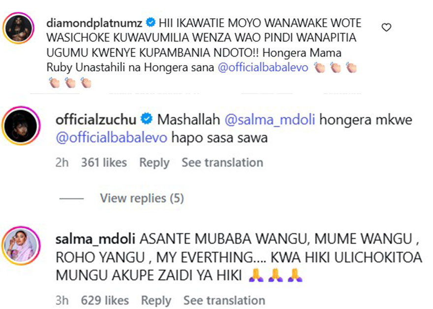 Diamond na Zuchu ni watu wa karibu wa familia hii ya Babalevo na nimeona wote wawili wakiacha maoni yao kumpongeza Mama Ruby kwa uvumilivu huku wakisisitiza kuwa anastahili zawadi hiyo kwa uvumilivu wake.